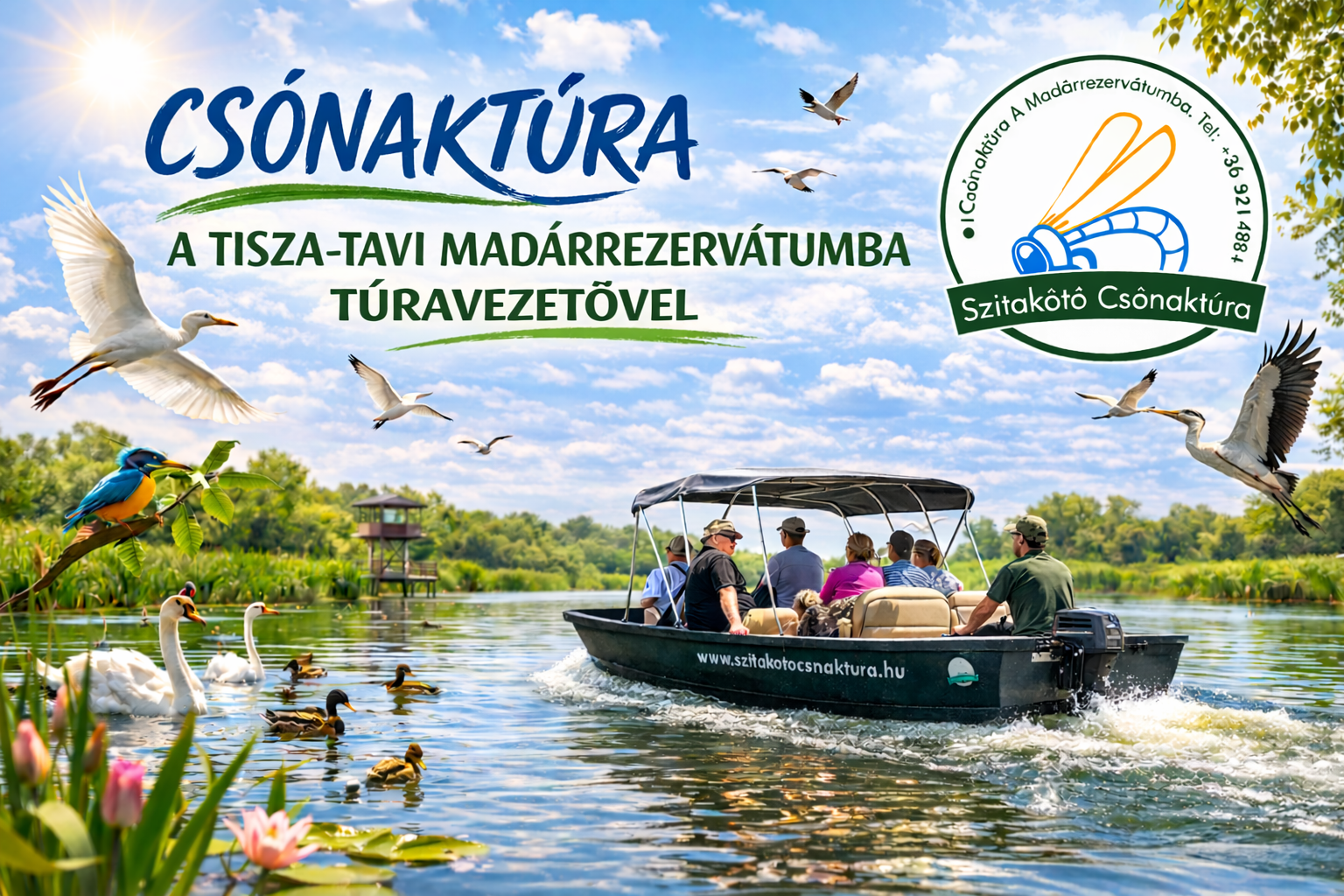 A Szitakötő Csónaktúra csapata a Tisza-tavon túravezetéssel foglalkozik, mely során szakképzett öko-túravezetőink mutatják be a Tisza-tó nevezetes és vadregényes tájait. A túrát megelőzően ismertetjük a csónakban és a vízen tartózkodás alapvető szabályait, majd megkezdődik egy csodálatos élővilág bemutatása.